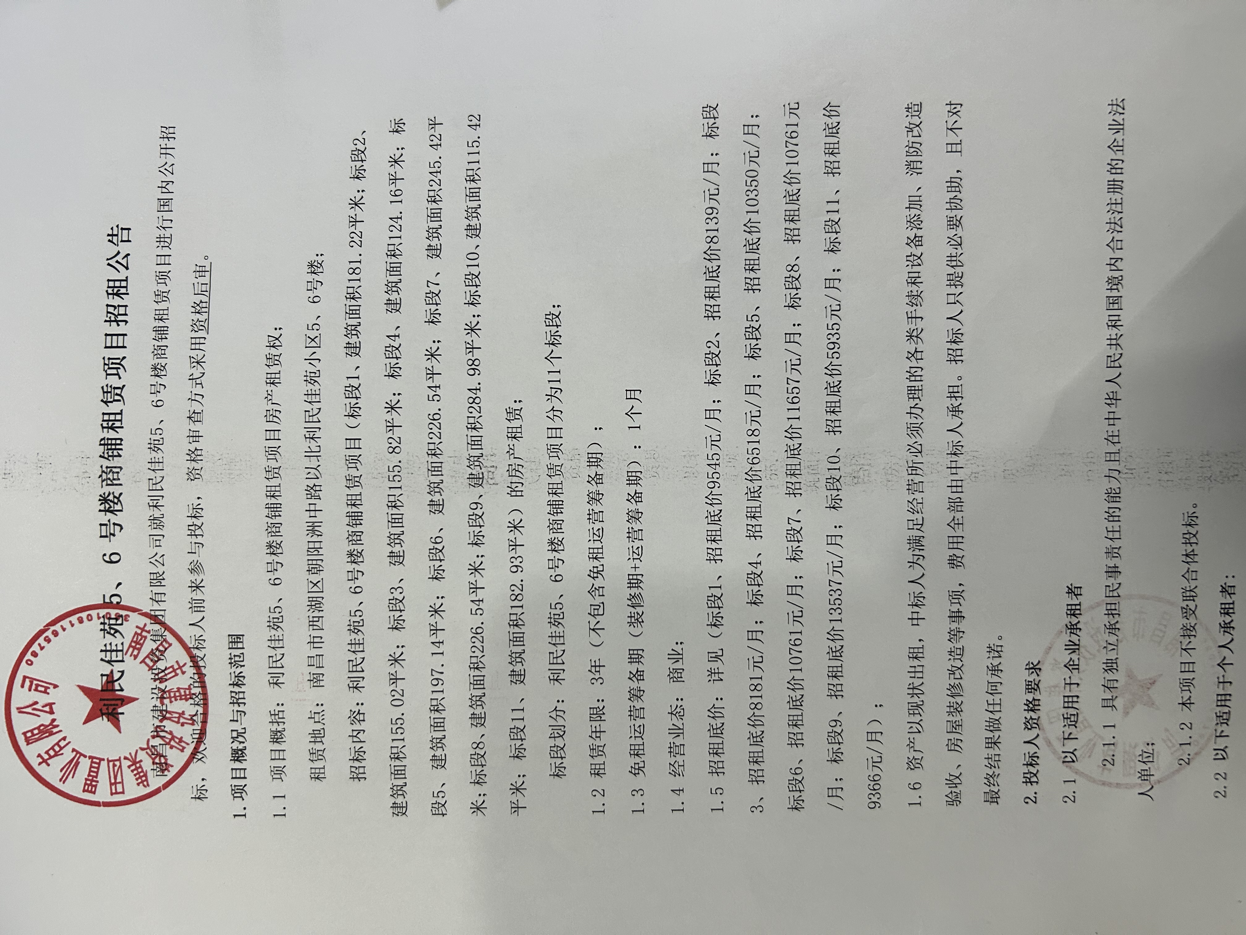 利民佳苑5、6号楼商铺租赁项目招租通告
